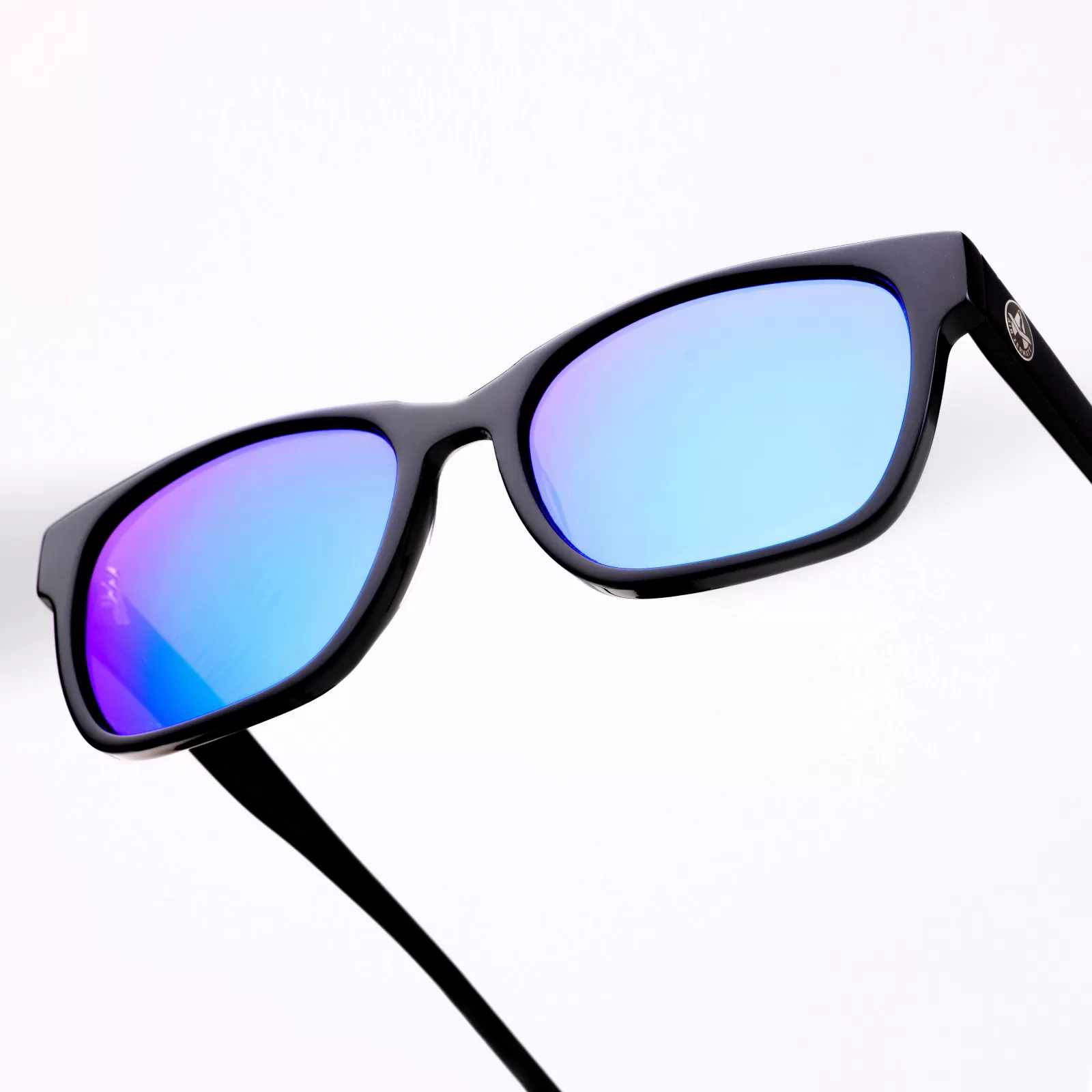 Sonnenbrille in Acetat-Fassung produziert by Marienfeld exklusiv für Air Zermatt. Verglasung mit qualitativ hochwertigem nicht polarisierendem CR39 Sonnenglas, aussen Mirror Flash, innen Anti Reflex. Beschriftung mit Air Zermatt Logo auf beiden Bügeln aussen. Lieferung inklusive Microfasersäckli im Air Zermatt Design.
