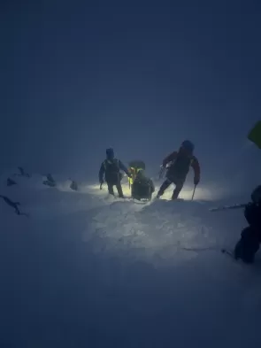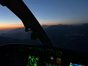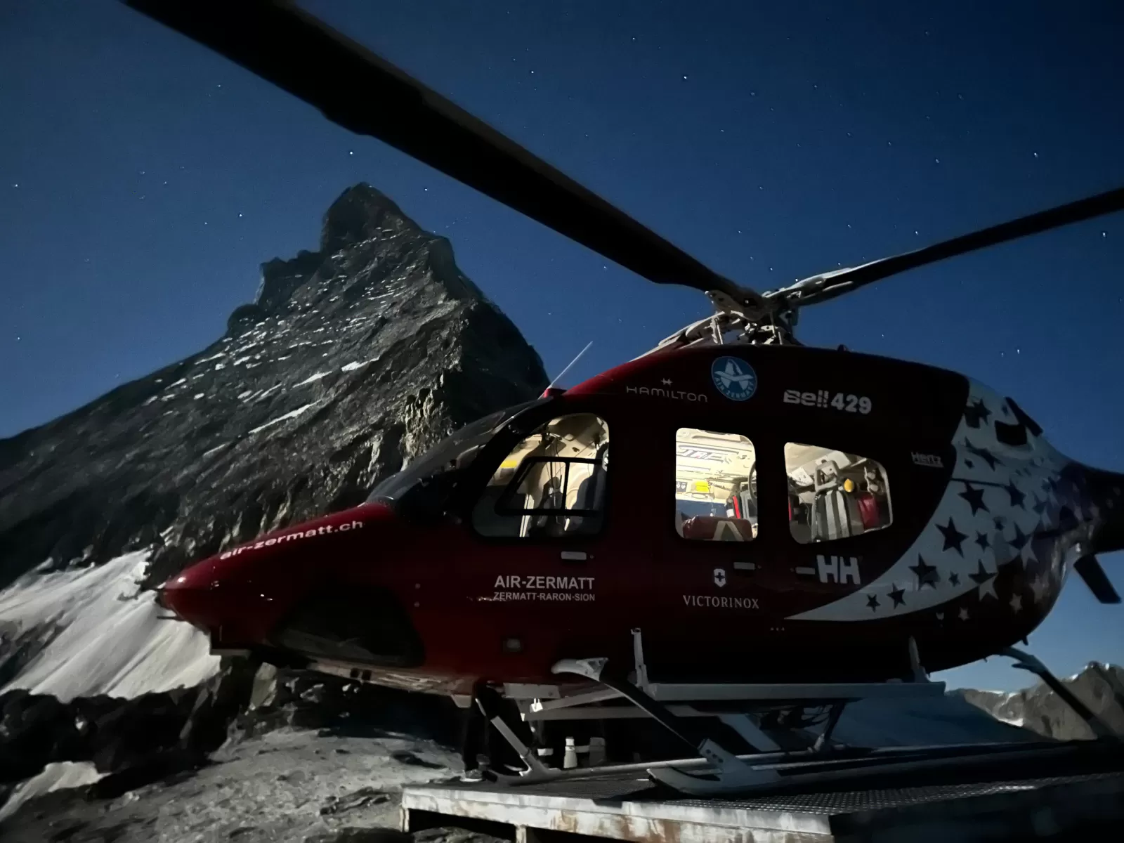 Die Sonne ist längst hinter den Bergen verschwunden. Unten im Tal flackern die letzten Lichter der Dörfer, doch weiter oben ist es stockdunkel. Plötzlich schrillt im Hangar das Handy der Rettungscrew. Ein Notruf. Wenige Minuten später startet die Crew der Air Zermatt in die Nacht.