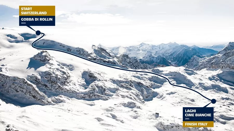 Der Start der Rennpiste «Gran Becca» befindet sich auf Schweizer Boden auf 3'720 m. ü. M und ist damit nicht nur der frühste Skievent im FIS-Kalender, sondern auch der höchstgelegene. Das Ziel befindet sich bei Laghi Cime Bianche (2'810 m. ü. M), was die Strecke über die Landesgrenze Schweiz-Italien laufen lässt.