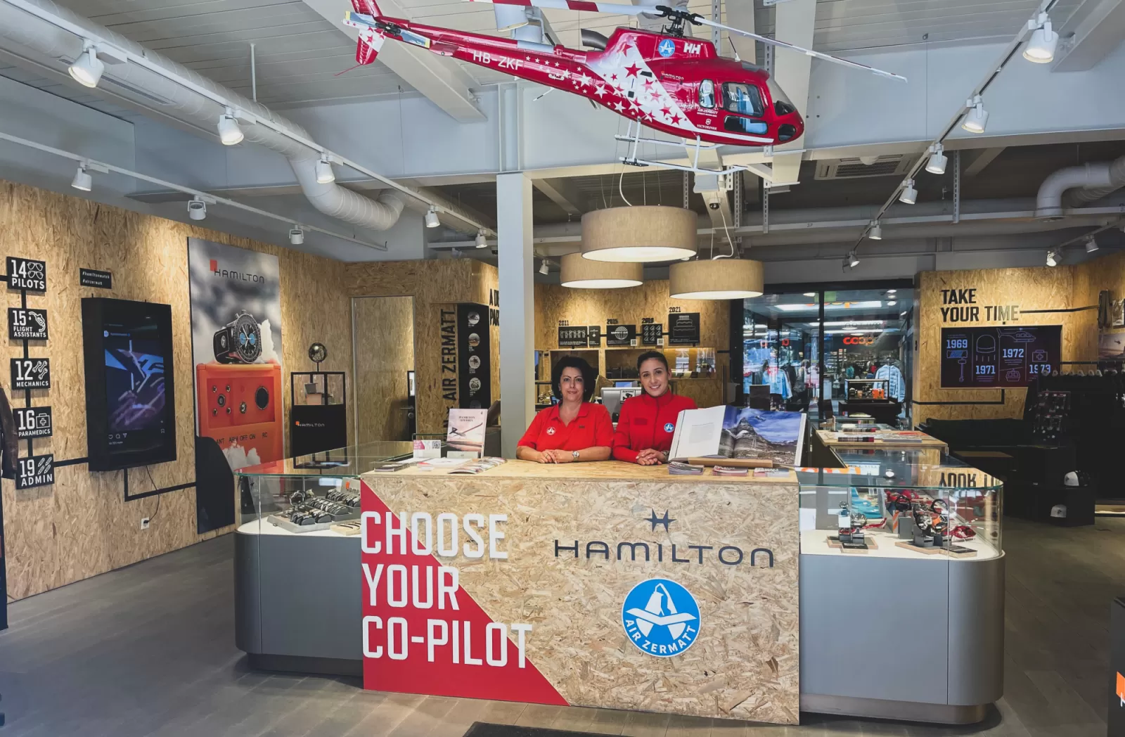 Seit vergangenem Juni treffen Einheimische, Gäste und Touristen aus aller Welt die Air Zermatt direkt im Dorf von Zermatt an: Der Pop-up-Store Air Zermatt x Hamilton bietet einen eindrücklichen Einblick in den Arbeitsalltag und hinter die Kulissen der Air Zermatt sowie das Geschehen auf dem Heliport.