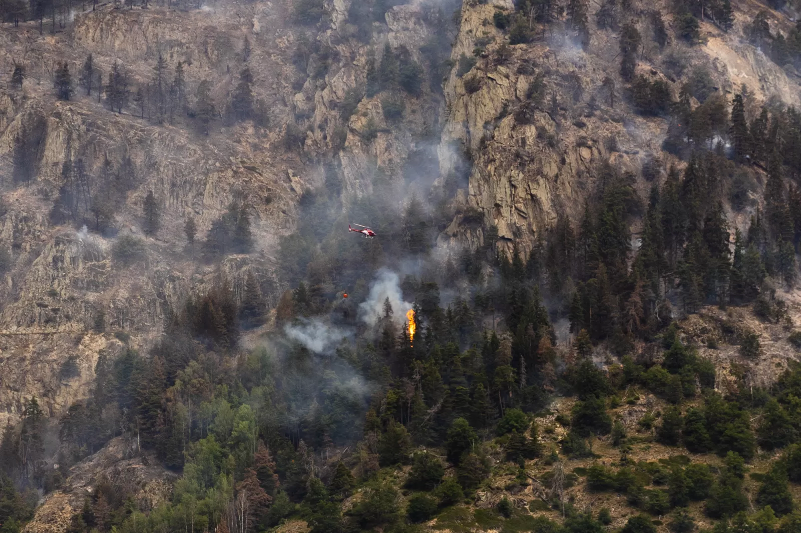 Seit über einem Tag kämpfen Helikopter der Air Zermatt gegen den Waldbrand oberhalb Bitsch. Insbesondere die Löschflüge der Air Zermatt während der ersten Stunden und während der Nacht auf Dienstag konnten das Feuer deutlich eindämmen; Gebäude im Waldbrandgebiet konnten durch den unermüdlichen Löscheinsatz geschützt werden.