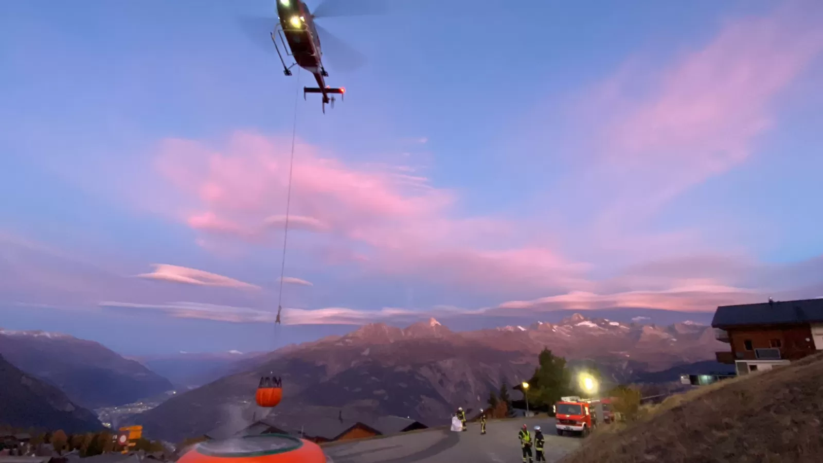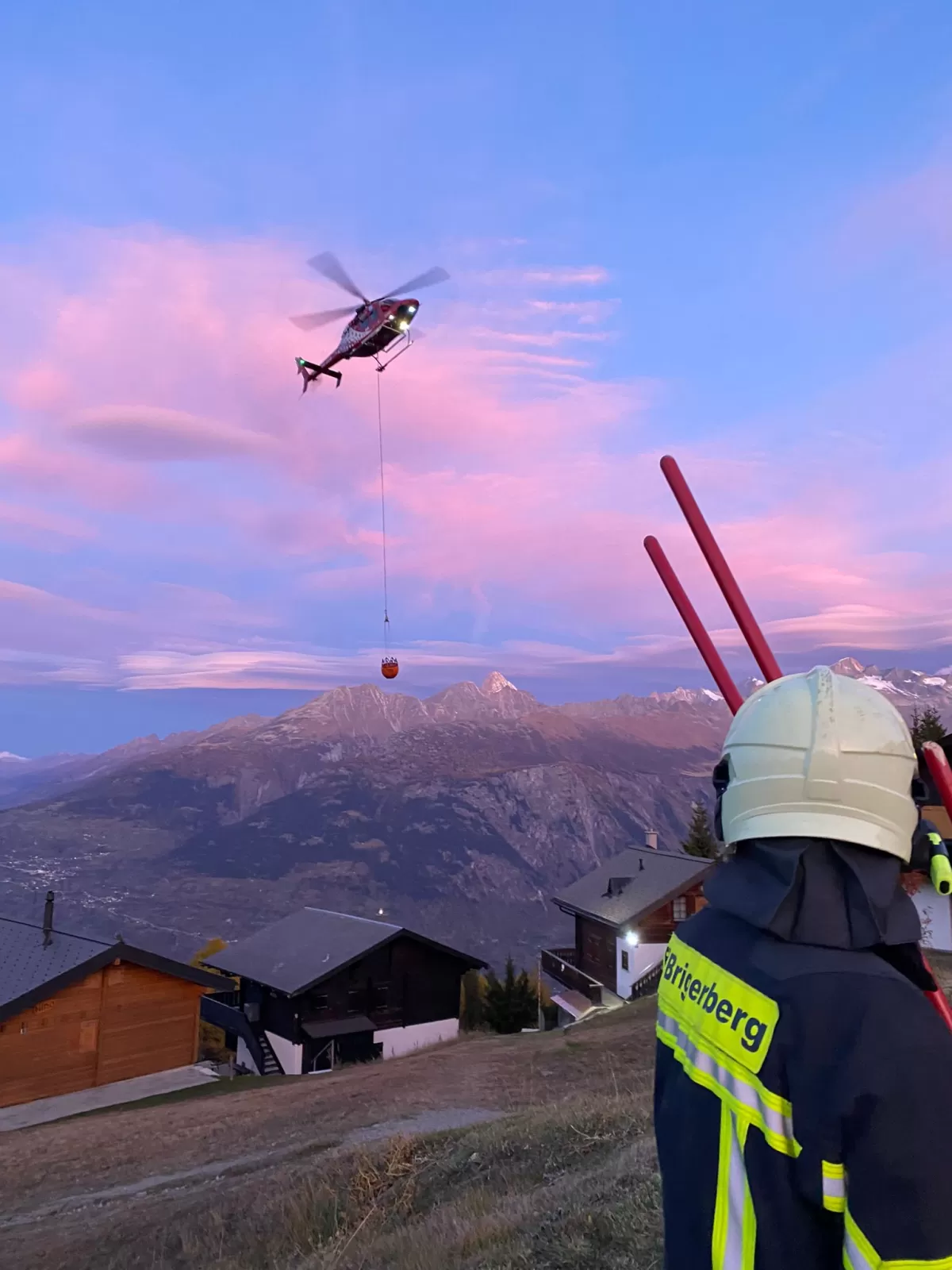 Östlich von Rosswlad war in den frühen Morgenstunden ein Brand auf rund 1800 Meter über Meer ausgebrochen. Die Löscharbeiten wurden bei Dämmerung mit dem Löschhelikopter der Air Zermatt aufgenommen.