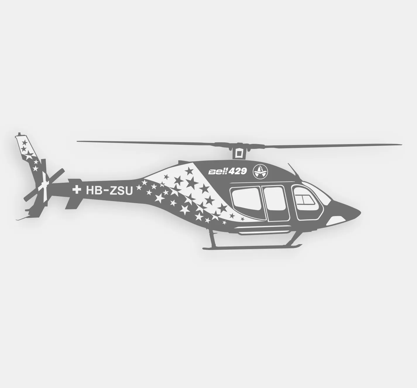 Der einfarbige Bell429 Helikopter Sticker in den Dimensionen 43 x 13cm besteht aus einer widerstandsfähigen Folie mit Schutzschicht wodurch die Farben tadellos bleiben. Der Aufkleber scheut weder Regen noch Kälte und hat eine lange Lebensdauer, wenn er auf einer sauberen und trockenen Oberfläche aufgebracht wurde.