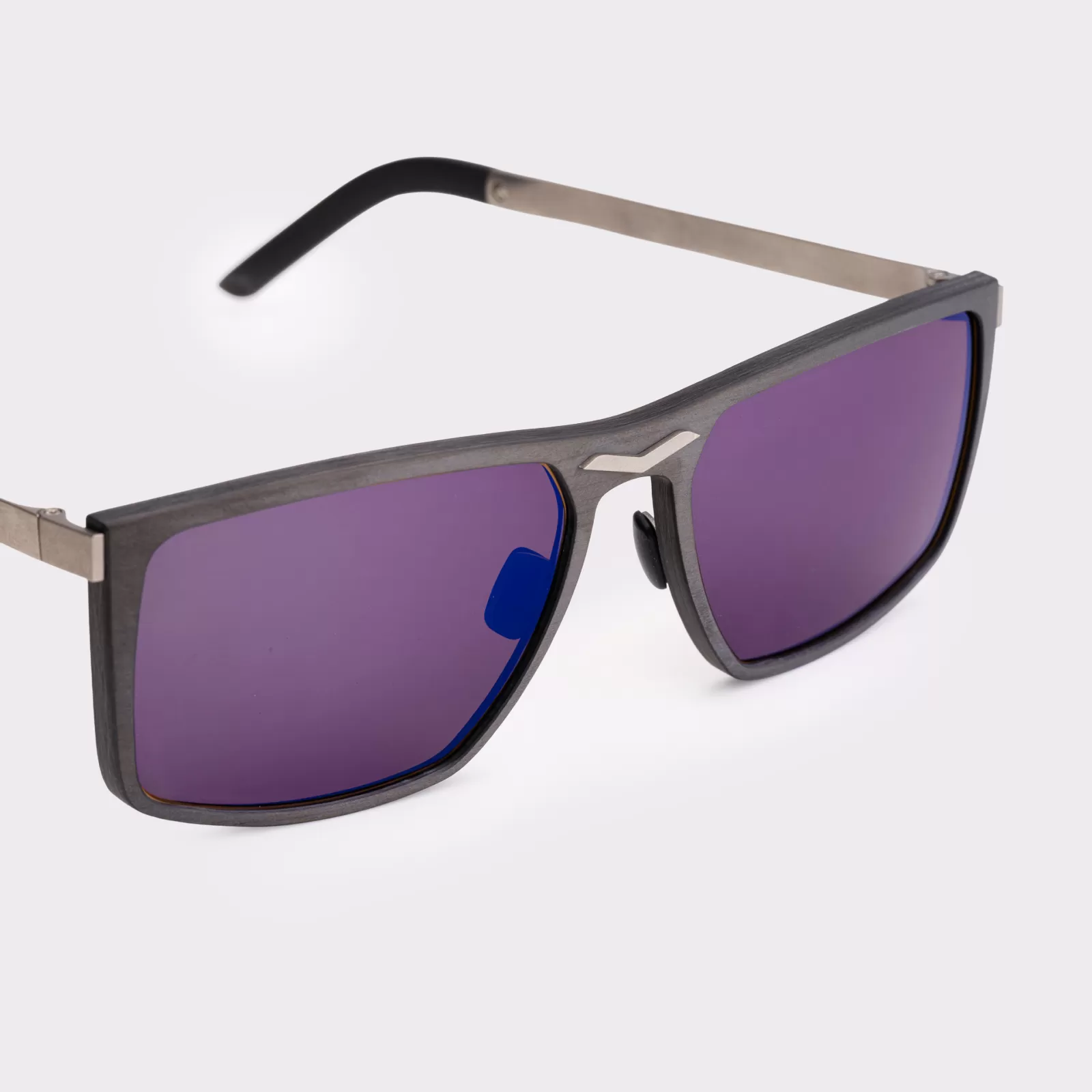 Die klassische squared Herrenbrille, breite Front, grosses Sichtfeld, neu entwickelte, einzigartige Verglasungsart in Carbon ohne Schliessblock, ZEISS Sonnenverglasung mit bestem UV-Schutz und Saphire Protection Coating, volle Instrumententauglichkeit mit Kontraststeigerung