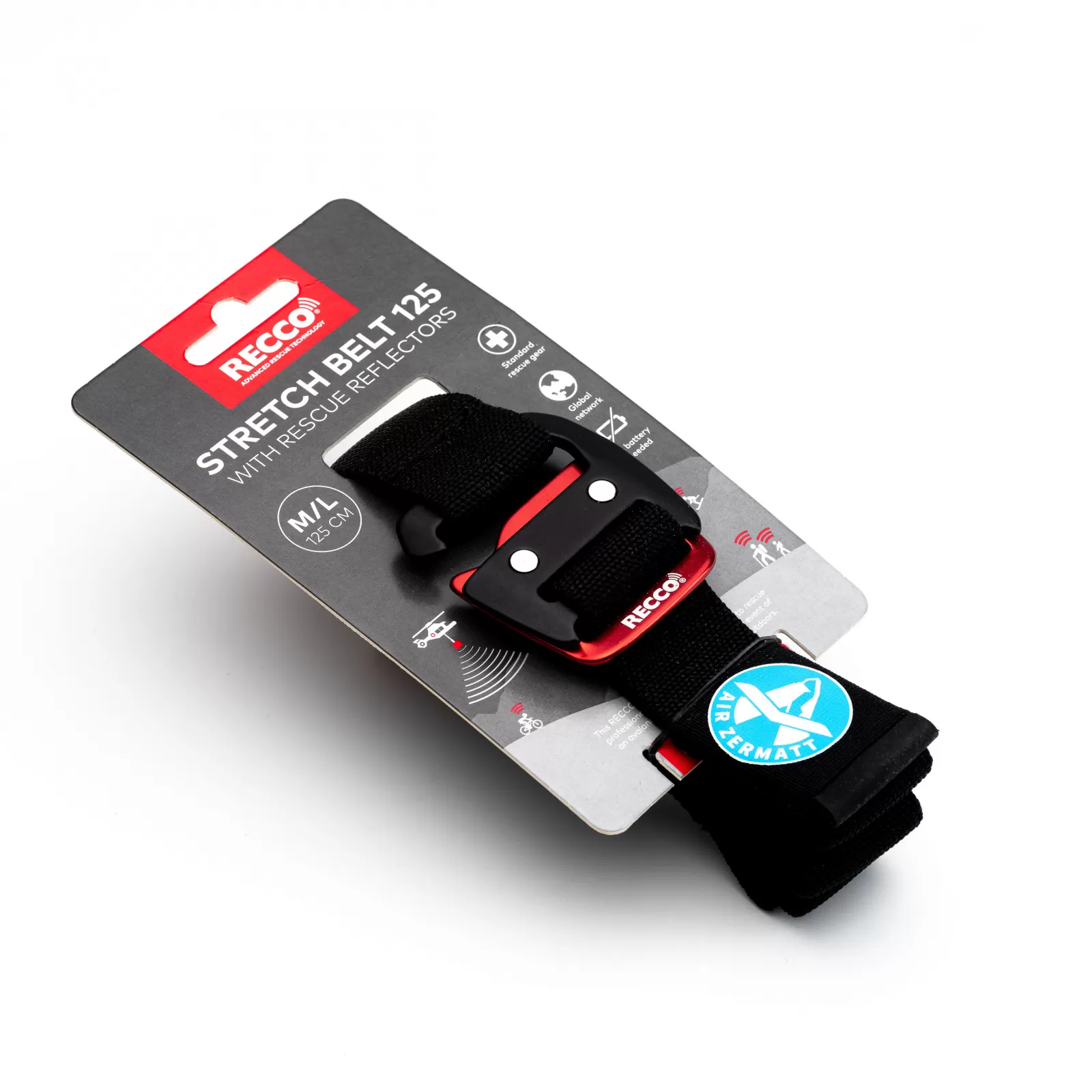 Das RECCO Suchsystem gehört seit vielen Jahren zur Standardausrüstung der organisierten Rettung bei Lawineneinsätzen. Um von den RECCO Detektoren der Bergretter geortet werden zu können, muss man mit einem RECCO Rettungs-Reflektor ausgerüstet sein. Mit dem RECCO SAR Helikopter Detektor können Rettungskräfte grosse Flächen, freies Gelände schnell und effektiv nach vermissten Personen vom Helikopter aus absuchen. Der RECCO Gürtel mit Rettungs-Reflektoren ist mit dem Air Zermatt Logo personalisiert.