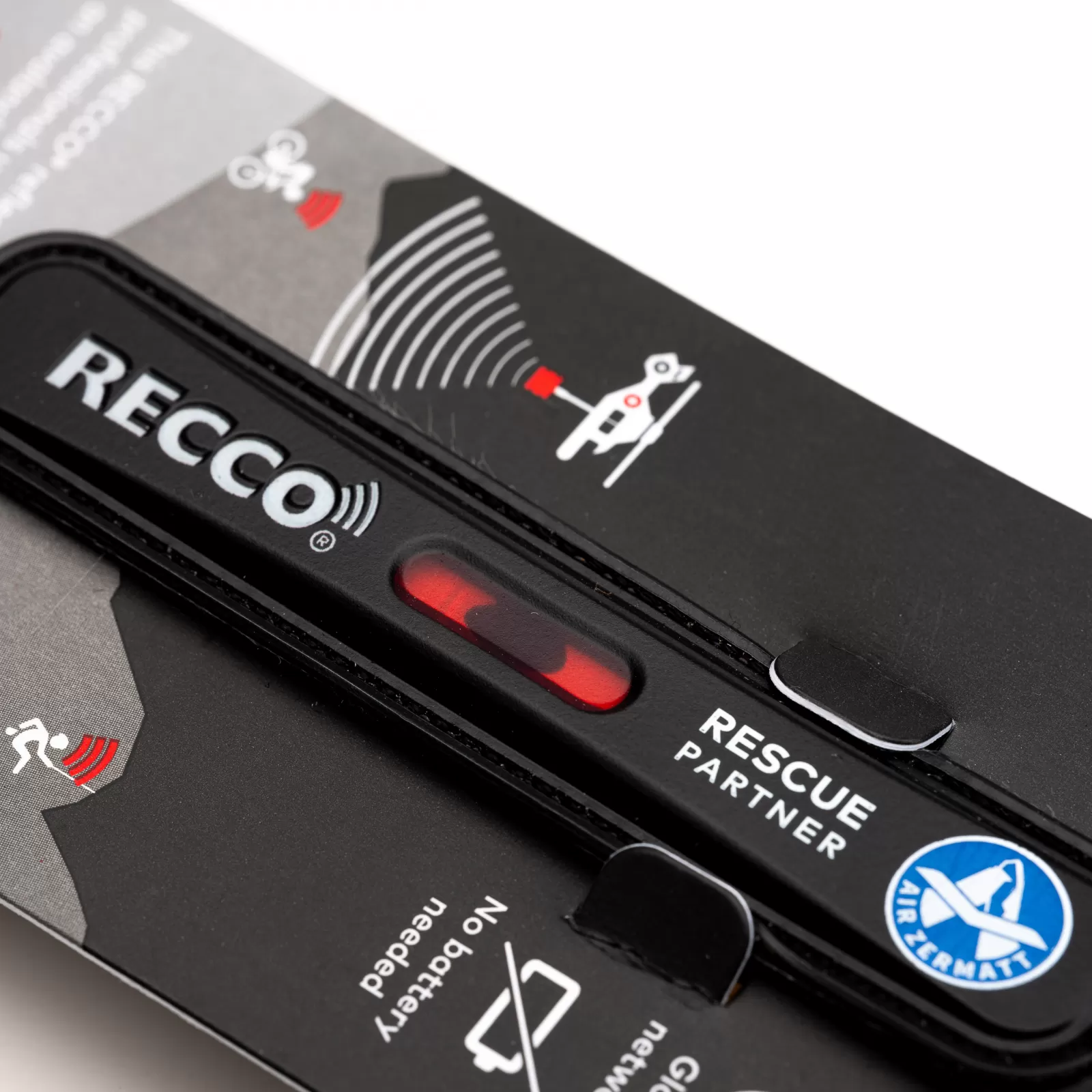 Der RECCO Helm Reflektor ist mit dem Air Zermatt Logo personalisiert. Der RECCO Helm Reflektor wurde speziell für die Applikation an Ski-, Kletter-, Rad- und anderen Outdoor-Helmen entwickelt. Als Aufkleber konzipiert, kann der Reflektor unkompliziert an unterschiedlichsten Helmen dauerhaft befestigt werden. Das RECCO Suchsystem gehört seit vielen Jahren zur Standardausrüstung der organisierten Rettung bei Lawineneinsätzen. Um von den RECCO Detektoren der Bergretter geortet werden zu können, muss man mit einem RECCO Rettungs-Reflektor ausgerüstet sein. Mit dem RECCO SAR Helikopter Detektor können Rettungskräfte grosse Flächen freies Gelände schnell und effektive nach vermissten Personen vom Helikopter aus abzusuchen.