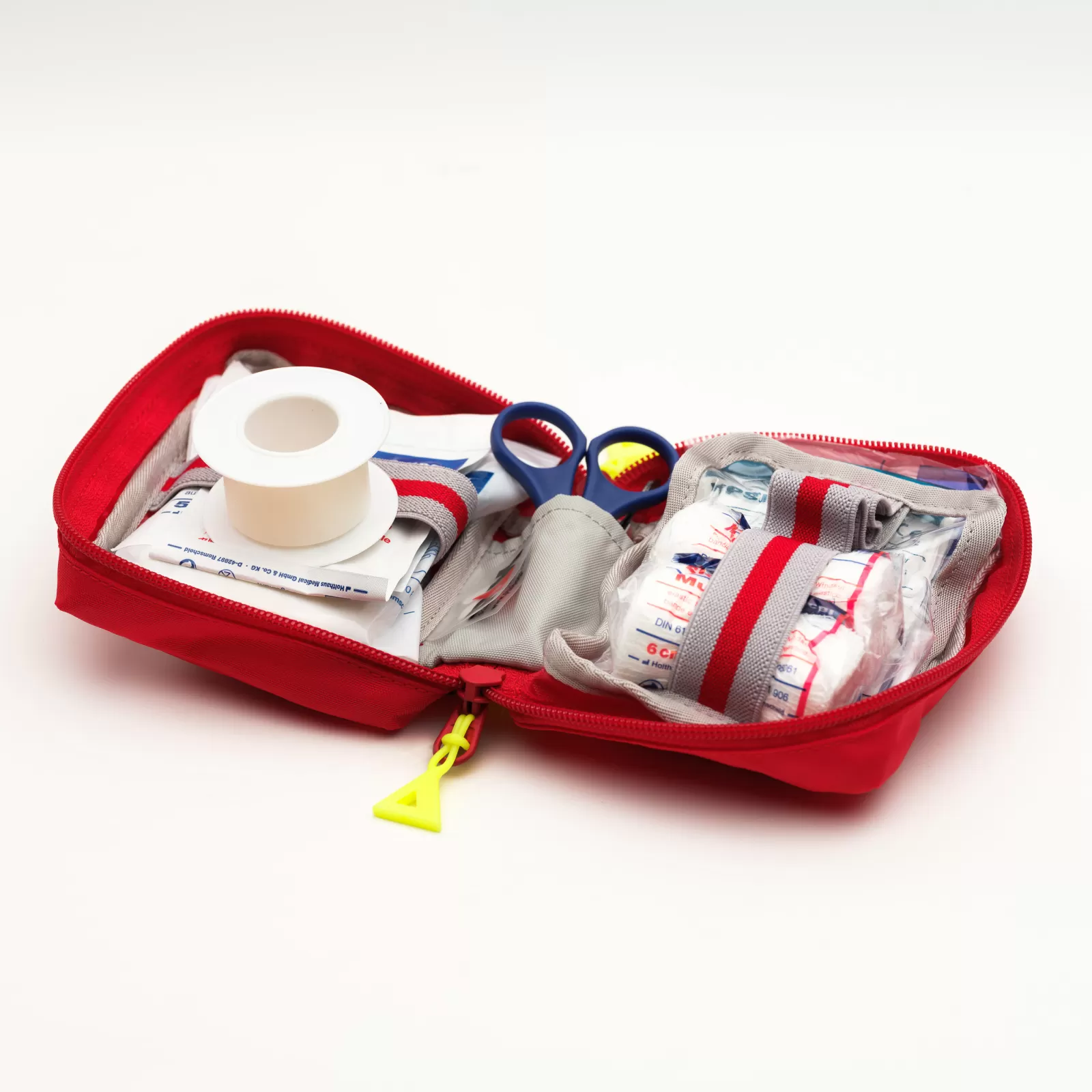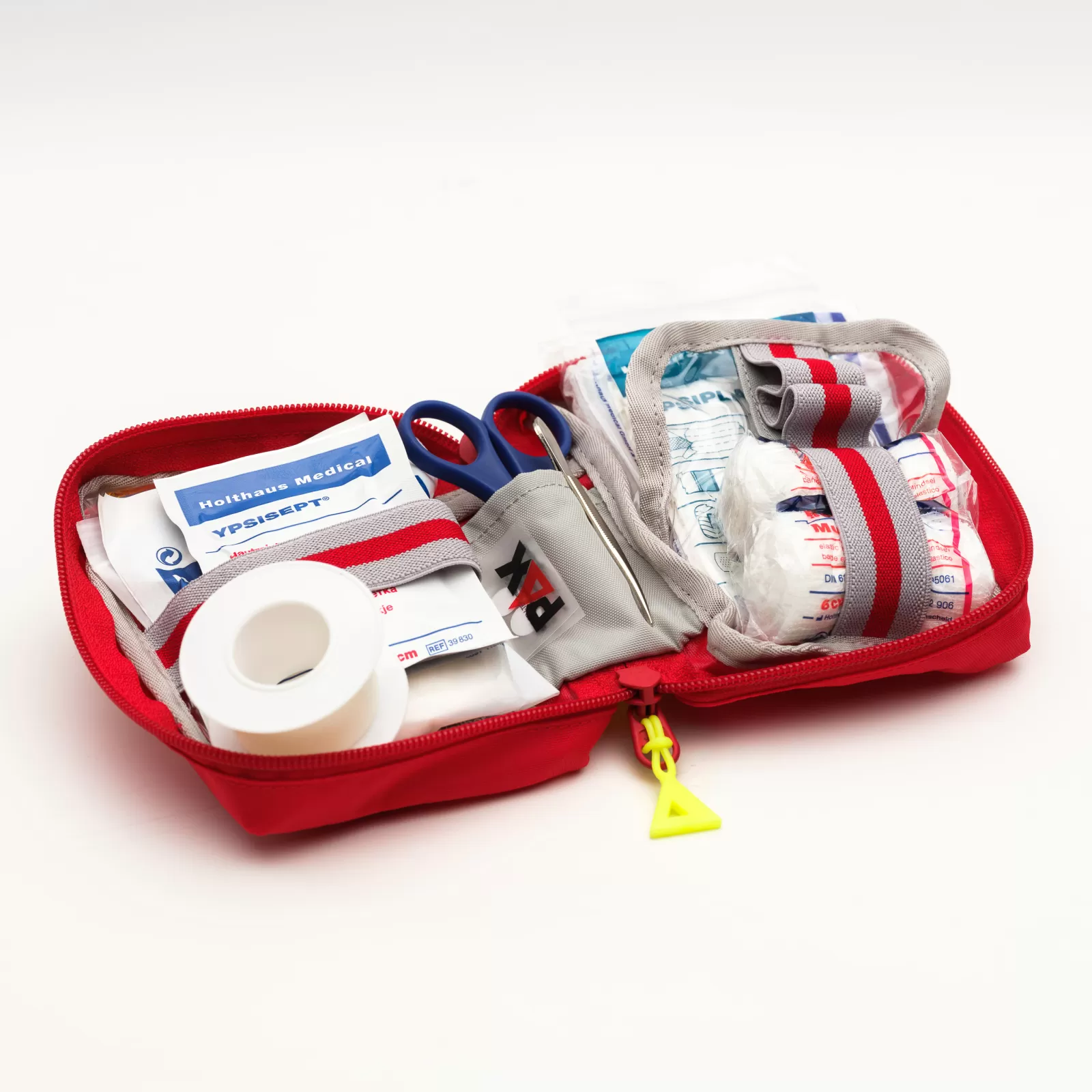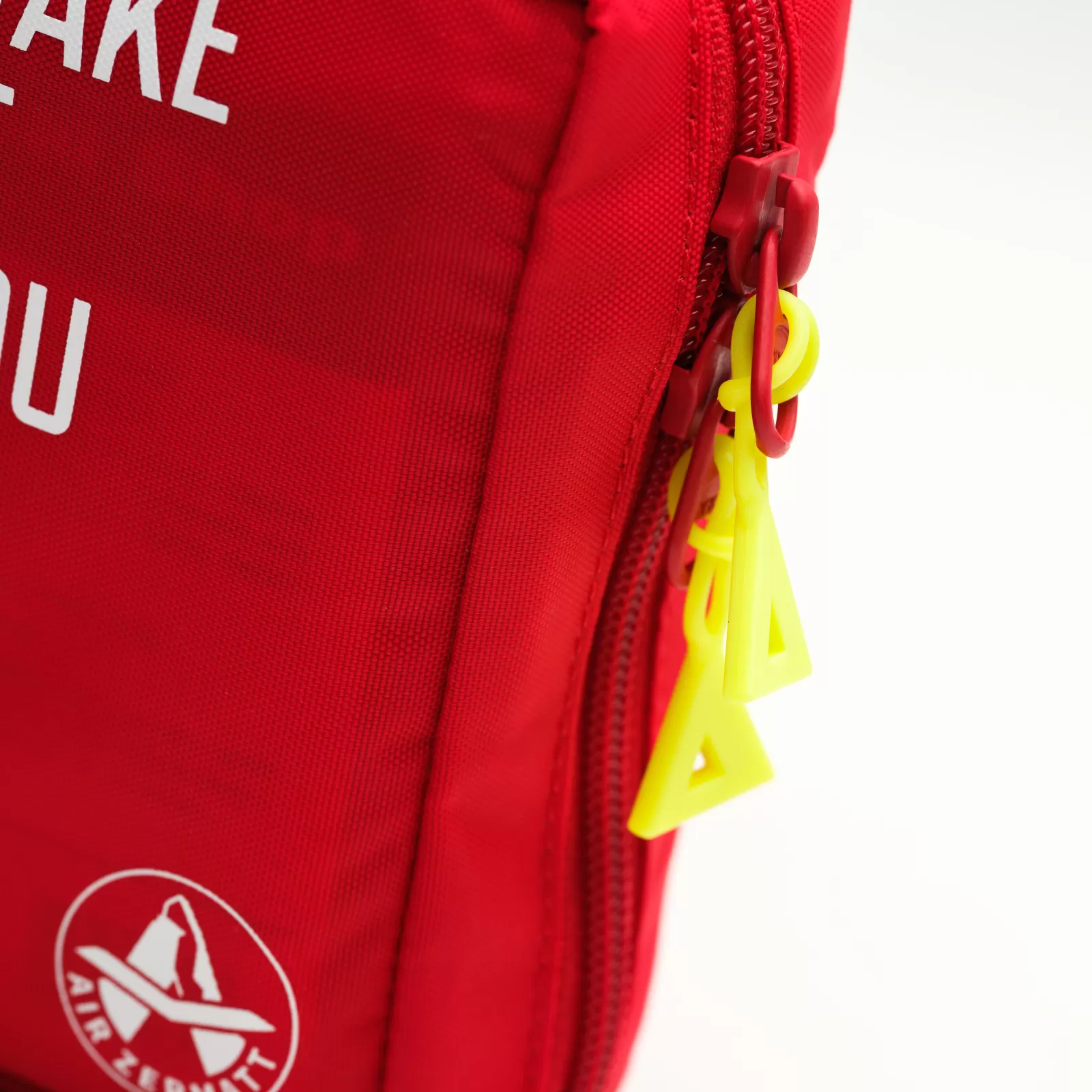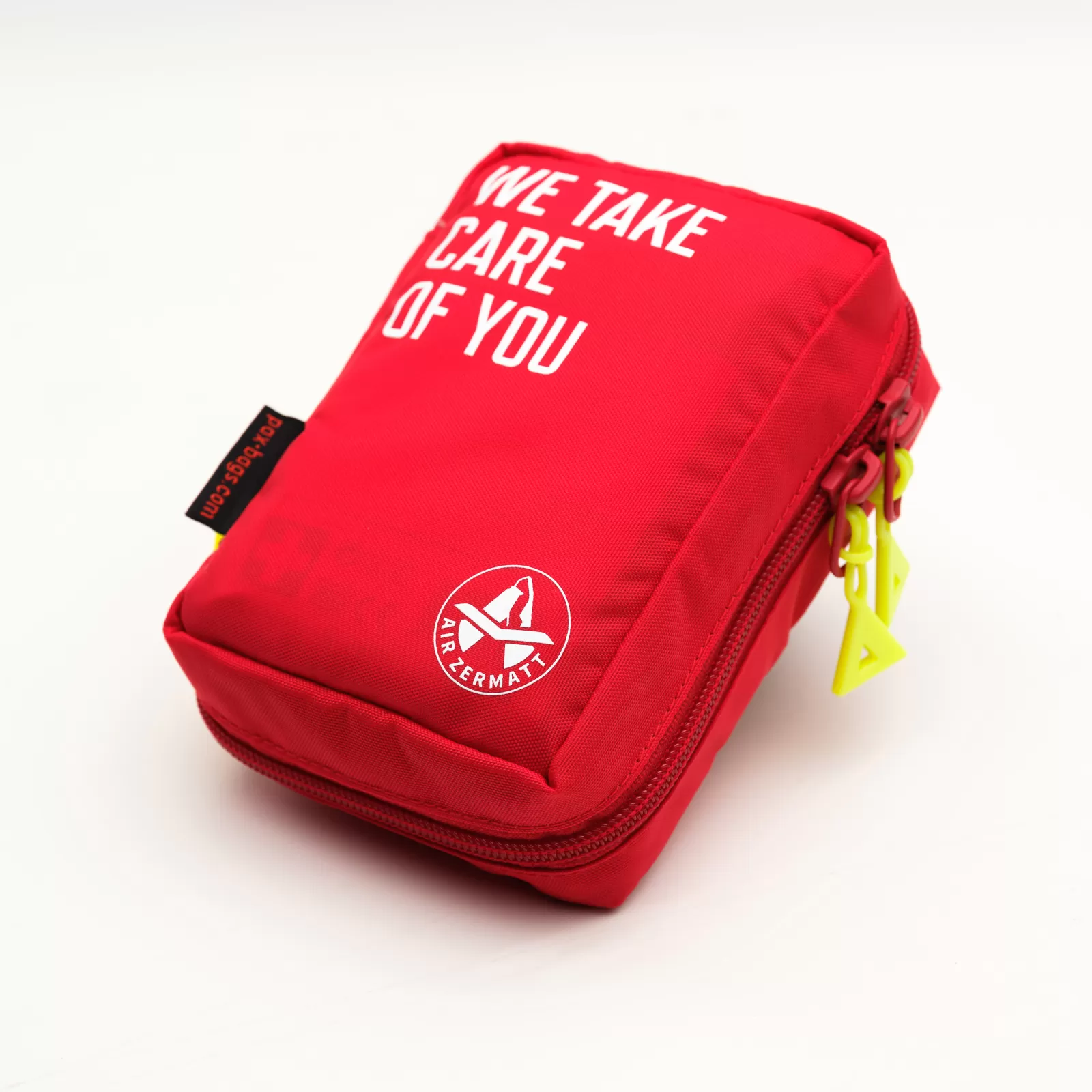 The Air Zermatt first aid bag by PAX is a small helper in an emergency and can still do big things. The small belt pouch with belt loop can be worn crosswise and lengthwise. Air Zermatt print "WE TAKE CARE OF YOU" with logo on the front of the bag. Dimensions: 6.1cm x 14cm x 10cm (width x height x depth).