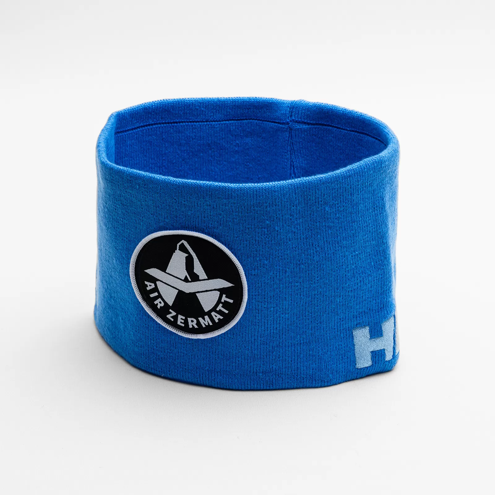This warm, moisture-wicking headband from the Helly Hansen brand is made from 95% recycled materials. The Air Zermatt logo is sewn onto the front in the form of a patch, and the Helly Hansen logo is embroidered on both sides.