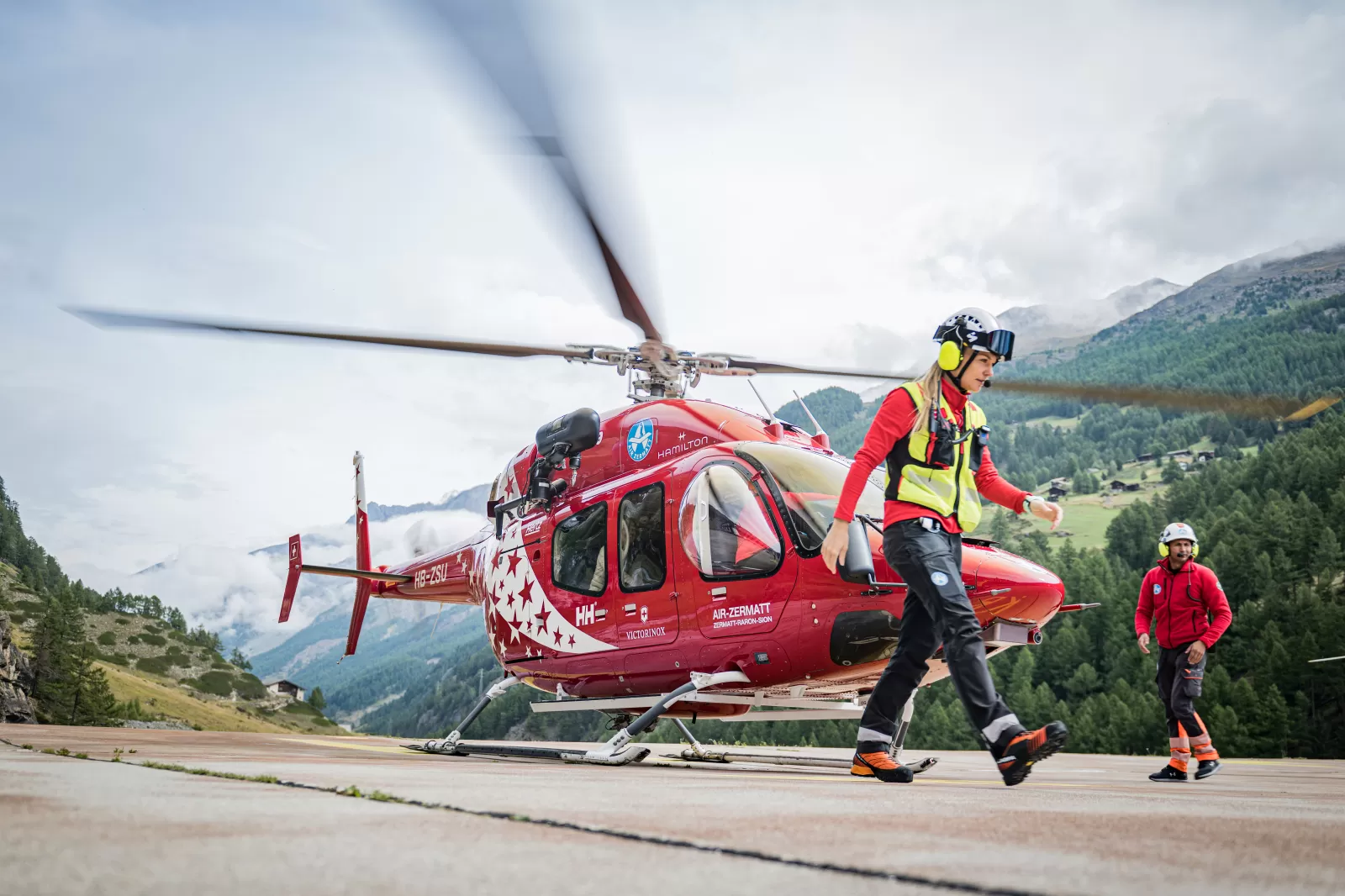 As soon as the Air Zermatt crews returned to base from a mission, they refuelled, replenished their medical supplies and set off again for the next mission. The spectrum of missions was broad and ranged from mountain accidents and medical emergencies to transfer flights and evacuations of exhausted people.
