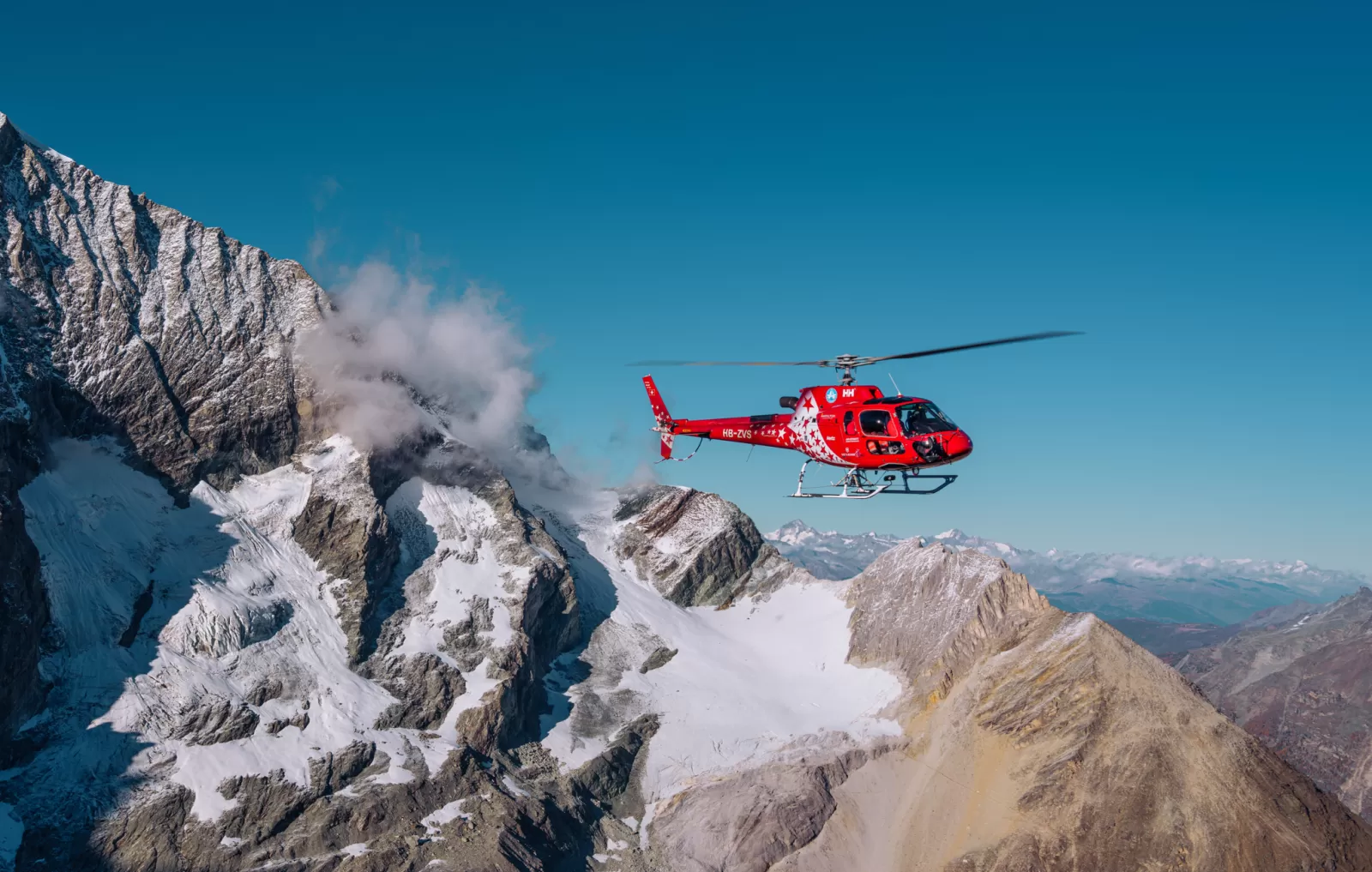With wind speeds of over 125 kilometres per hour, Air Zermatt rescued two climbers from France on Pollux. During their mountain tour, the two fell about 80 metres on unstable ground. This resulted in serious injuries to one of the alpinists. Despite extremely adverse weather conditions, Air Zermatt managed to fly the seriously injured man safely to hospital in Aosta.