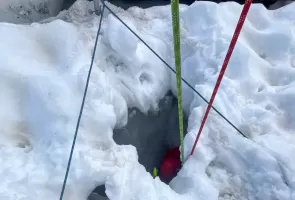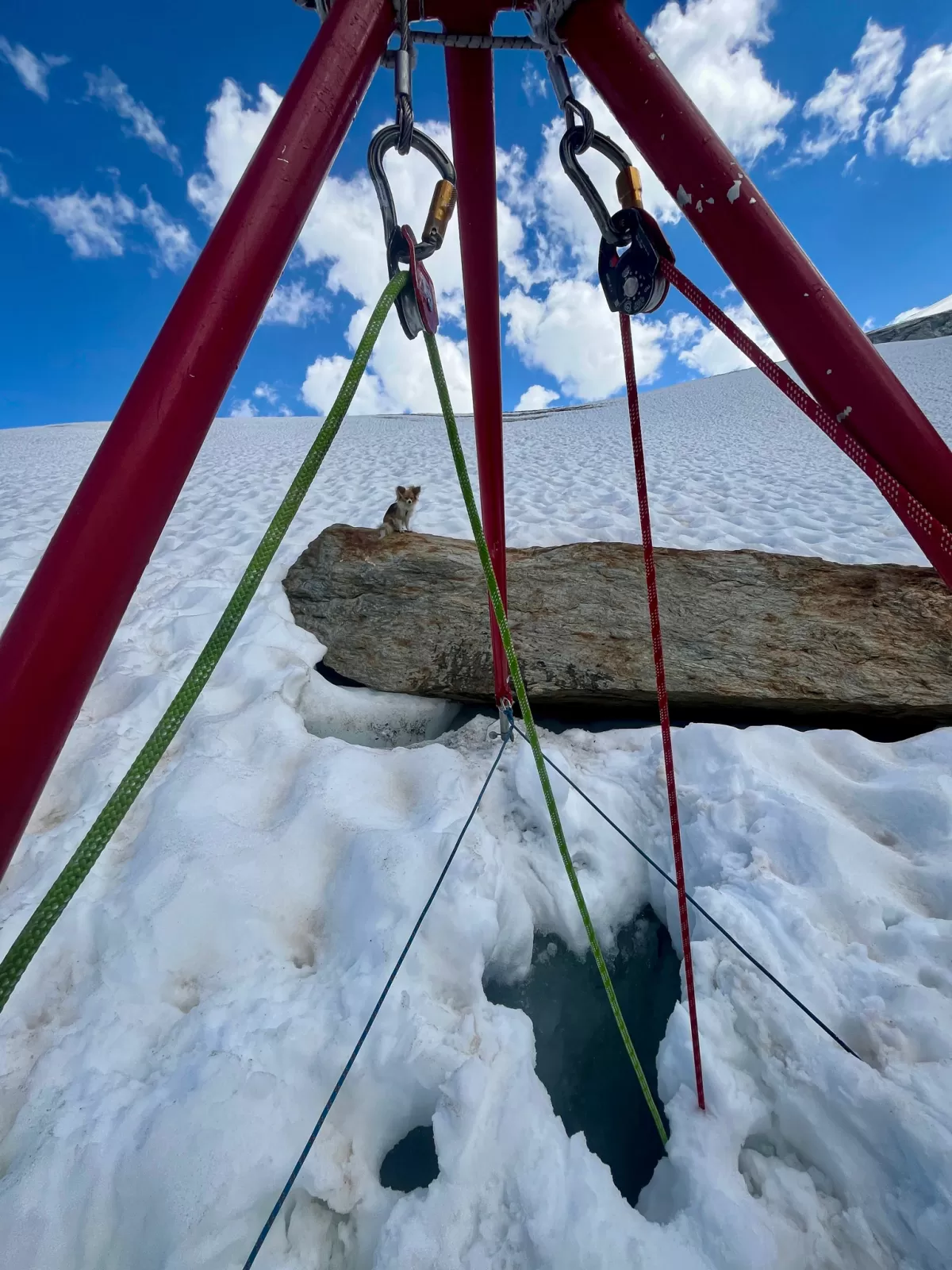 The man was travelling on the Fee Glacier with his little dog in the early afternoon when he suddenly broke through a snow bridge and fell into a crevasse. While the man was stuck in the glacier ice, his faithful companion, a small Chihuahua, was left at the edge of the crevasse.