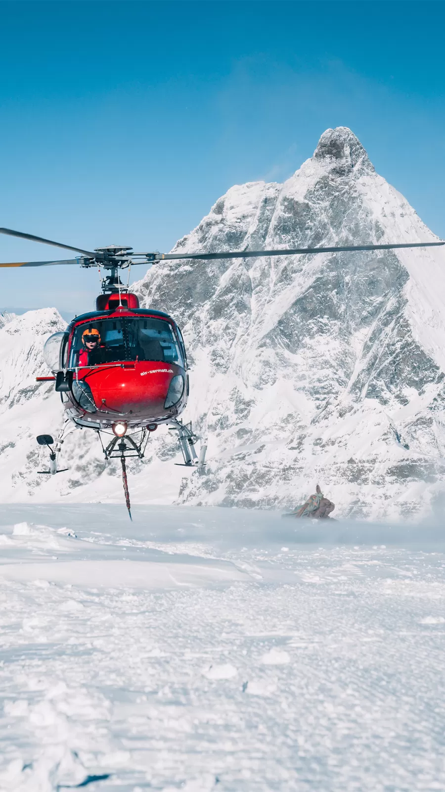 Experience a special day of skiing after flying just 20 minutes from the Rhone Valley to the Matterhorn ski paradise Plateau Rosa ski area at around 3,400 m above sea level. Start your ski day directly at Testa Grigia at the border to Italy and be one of the first skiers to glide down the slopes.