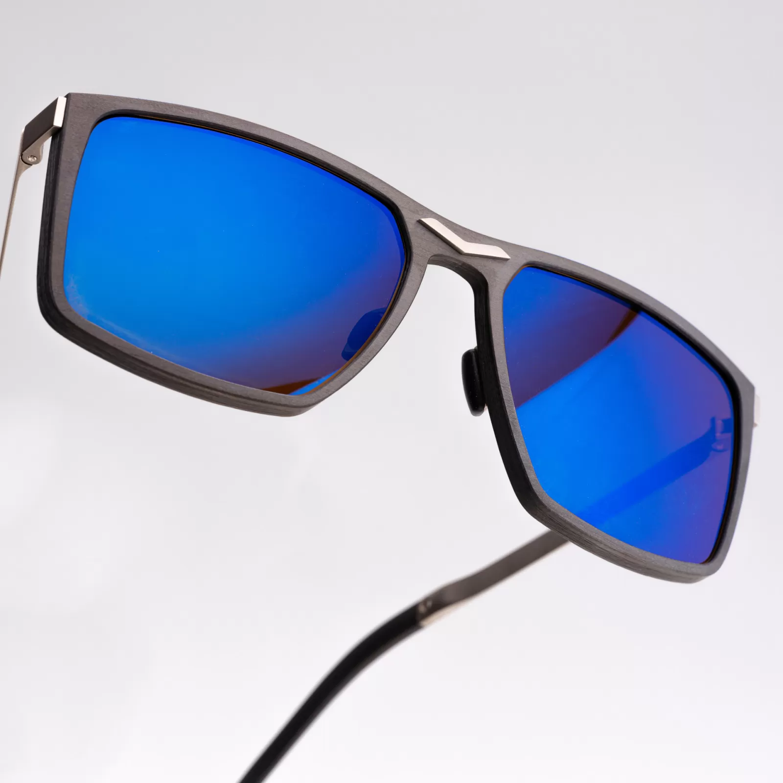 The classic squared men's glasses, wide front, large field of vision, newly developed unique glazing type in carbon without closing block, ZEISS sun lens with best UV protection and Sapphire Protection Coating, full instrument suitability with contrast enhancement.