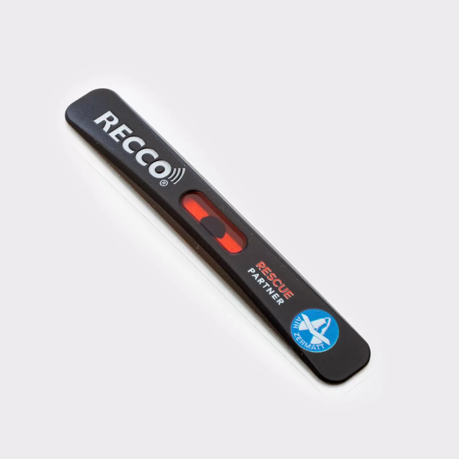 The RECCO helmet reflector is customized with the Air Zermatt logo. Designed as a sticker, the reflector can easily be permanently attached to a wide variety of helmets. The RECCO search system has been part of the standard equipment of organized rescue in avalanche operations for many years. In order to be located by the RECCO detectors used by mountain rescuers, one must be equipped with a RECCO rescue reflector. With the RECCO SAR Helicopter Detector, rescuers can quickly and effectively search large areas of open terrain for missing persons from a helicopter.